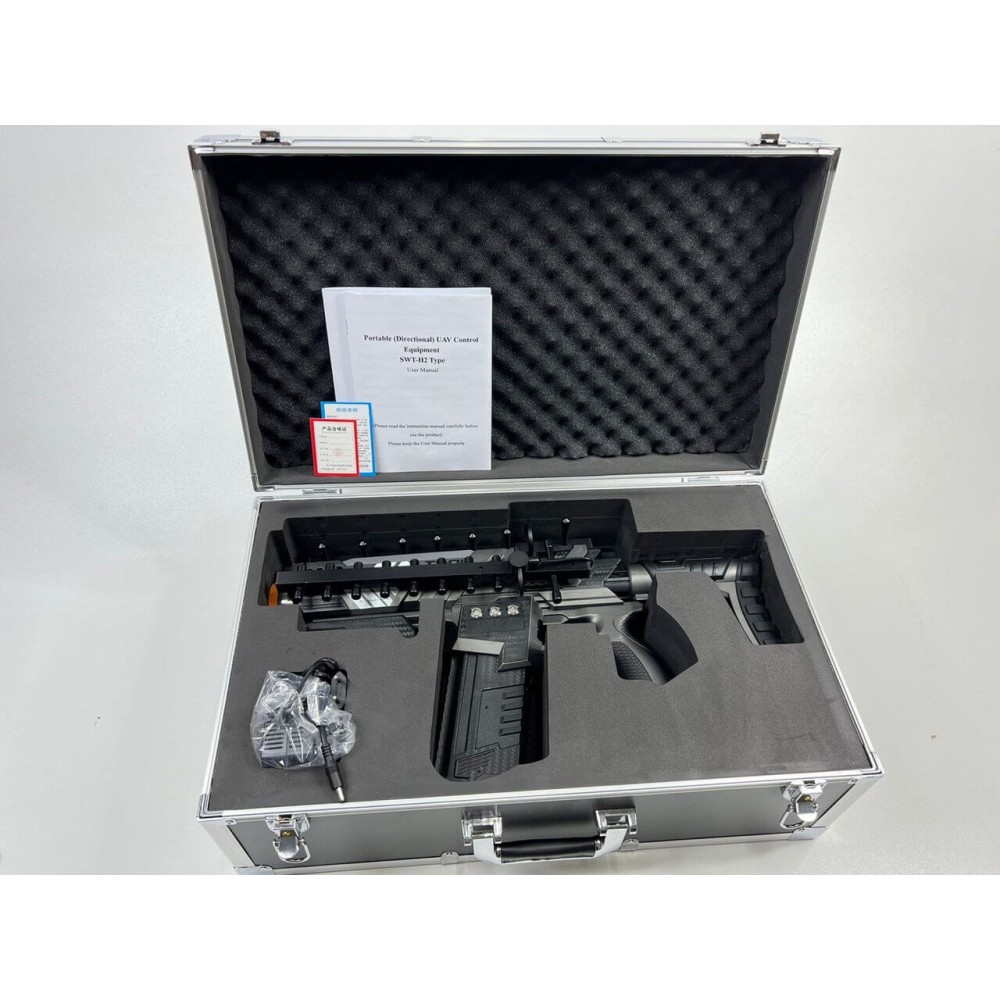 Антидроновое ружьё/подавитель БПЛА "ДРОН 1200" представляет собой специализированное устройство, разработанное для подавления и блокировки беспилотных летательных аппаратов (БПЛА) различных типов и моделей. Это 3-канальное устройство способно действовать на частотах GPS 1,5 МГц, 2,4 МГц и 5,8 МГц, что обеспечивает эффективную защиту от нежелательных воздушных воздействий дронов.
