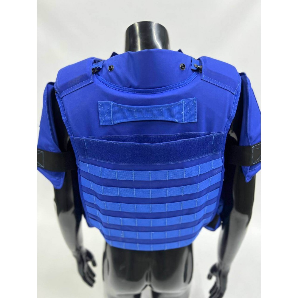 Бронежилет обеспечивает полную защиту благодаря своему баллистическому пакету, который включает переднюю, заднюю, боковую, плечевую, паховую зоны и шею. Бронеэлемент состоит из 45 слоев баллистической ткани из сверхвысокомолекулярного полиэтилена высокой плотности, обеспечивая надежную защиту от различных угроз.