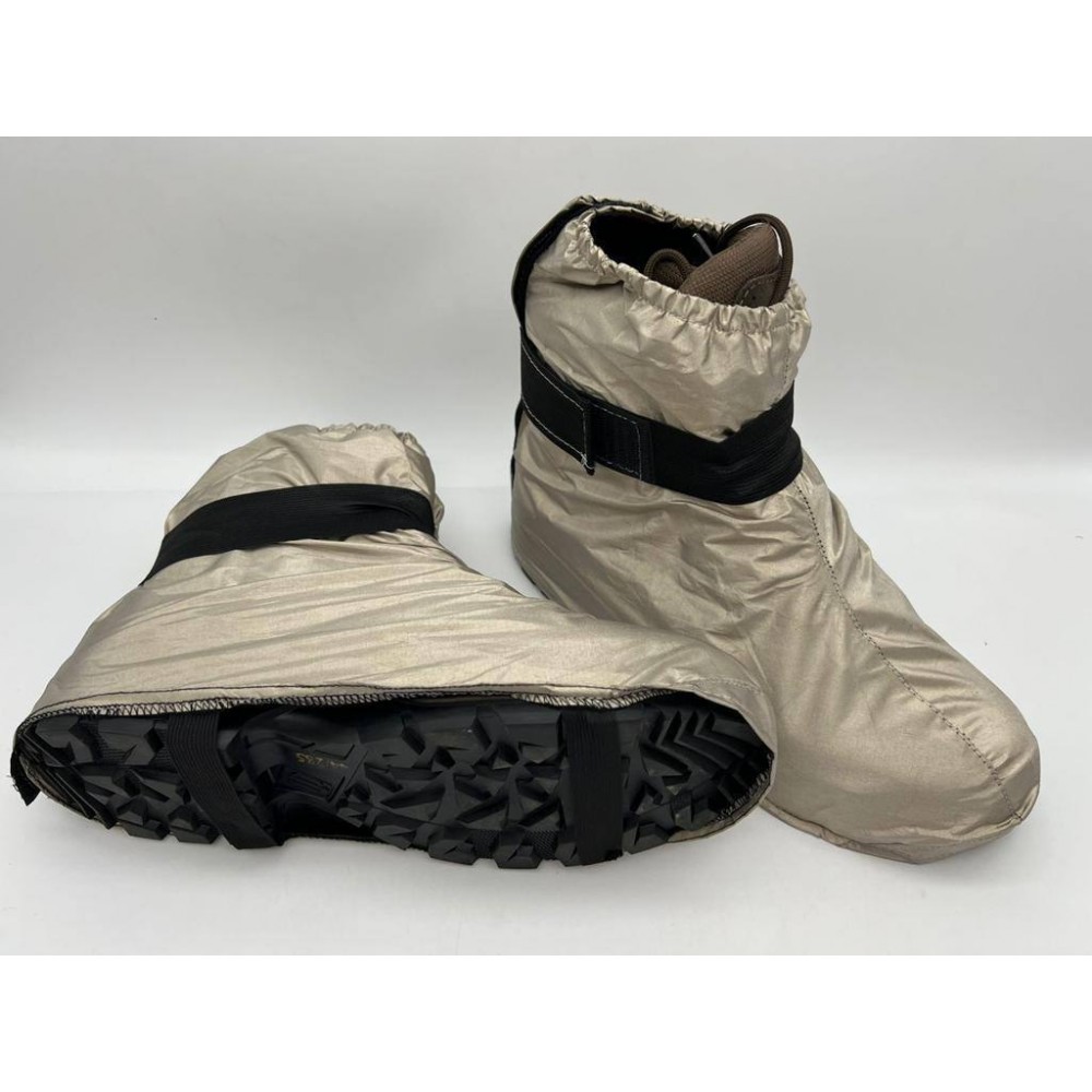 - Наденьте чехлы на обувь и зафиксируйте ленту Велькро.