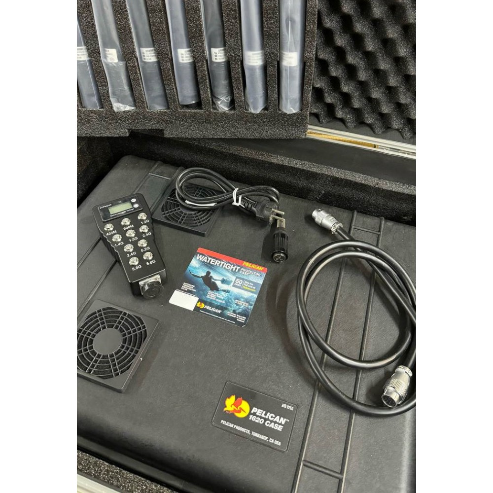 - Подавление радиочастотных диапазонов, включая менее популярные частоты, используемые квадрокоптерами, для максимальной безопасности охраняемого объекта.