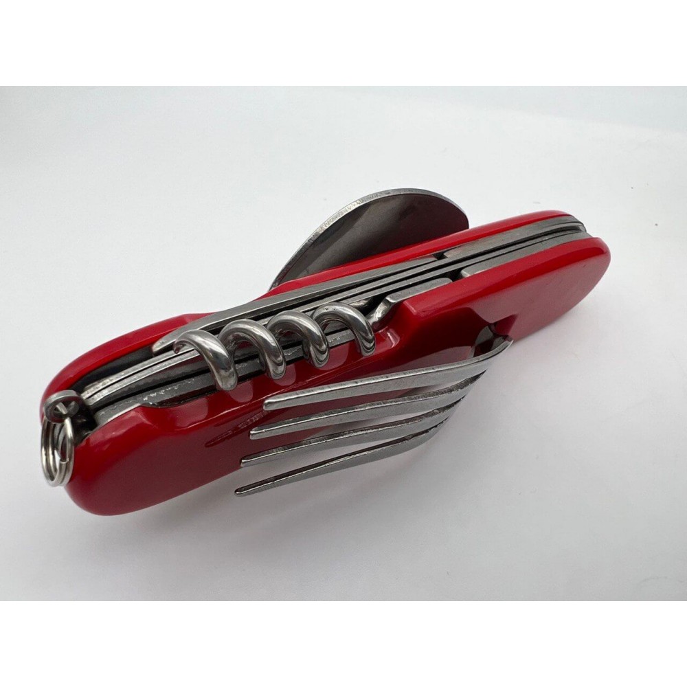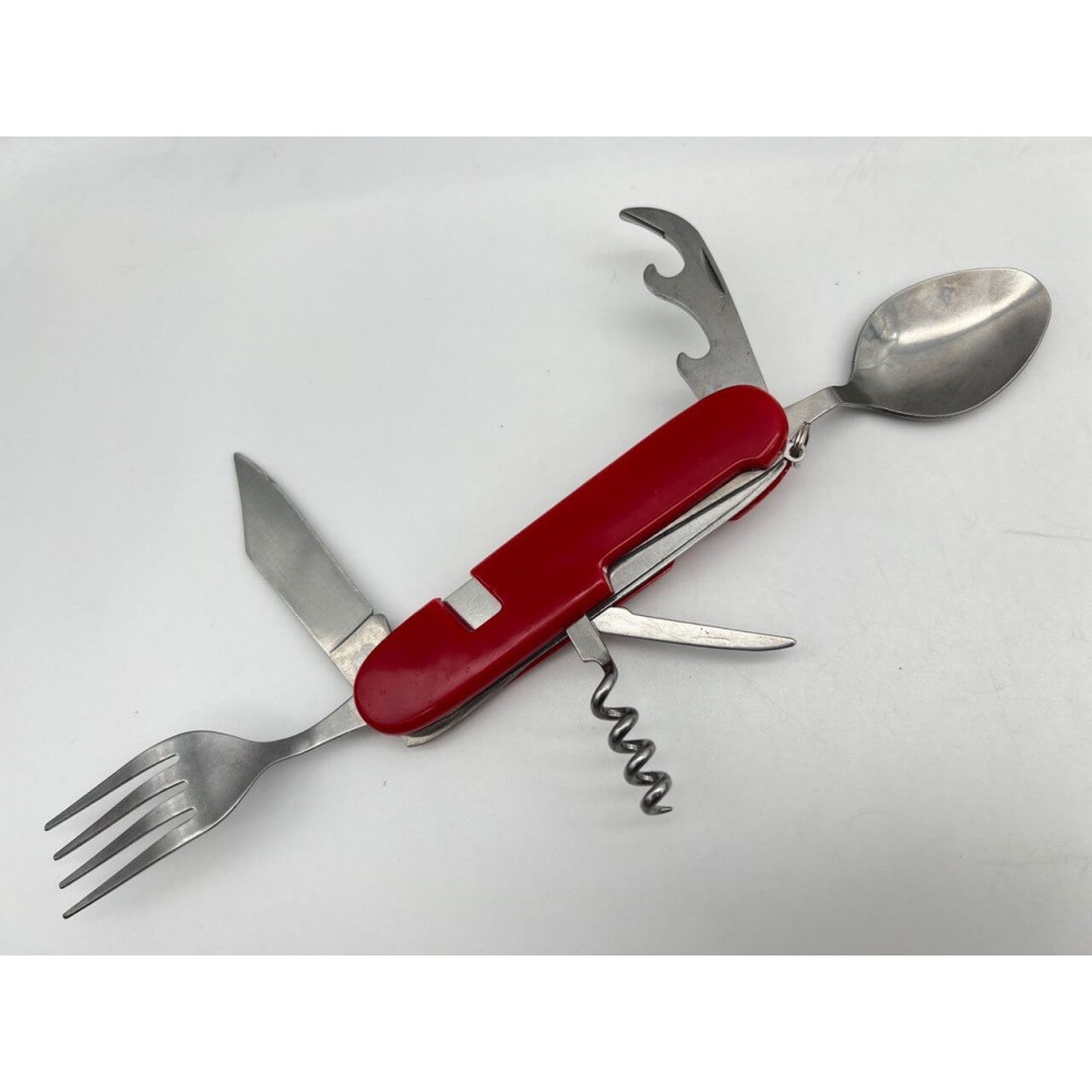 - Набор включает в себя все необходимые приборы для комфортного приема пищи: ложку, вилку, нож, открывалку для бутылок и консервных банок, а также пило-подобное лезвие.