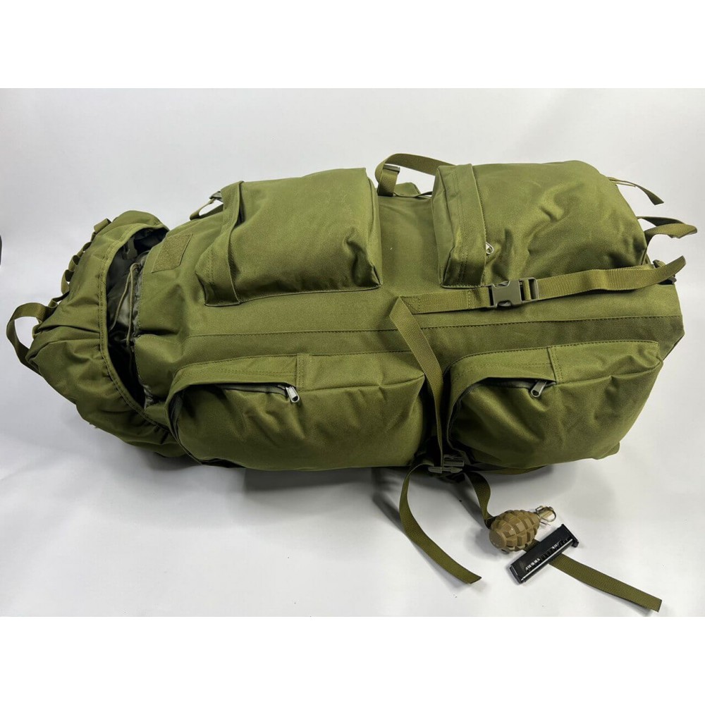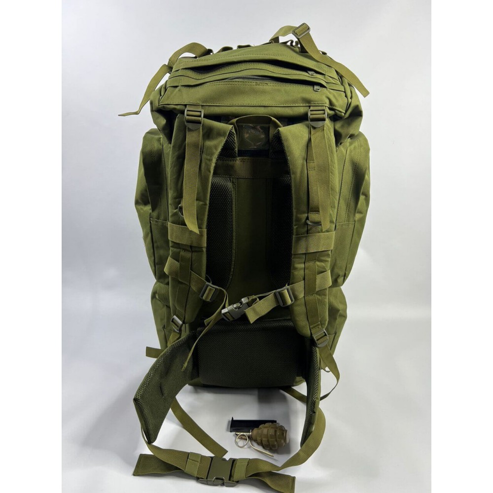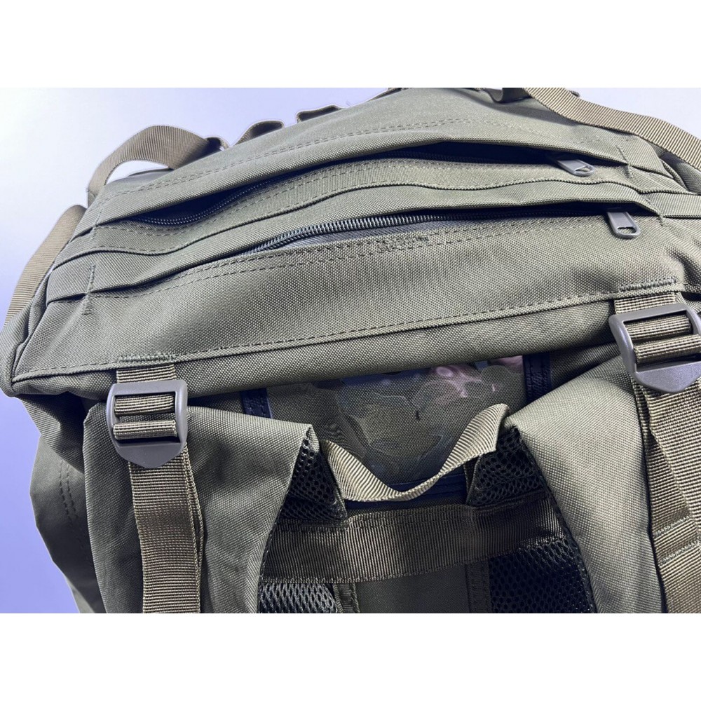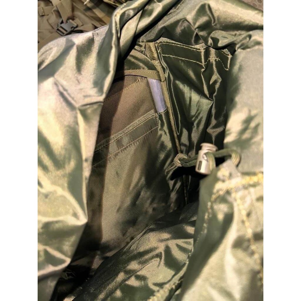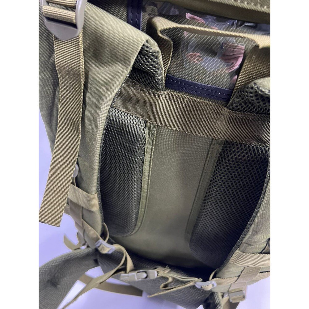 Рюкзак оснащён системой крепления молле, ремнями для крепления каремата, визитницей.